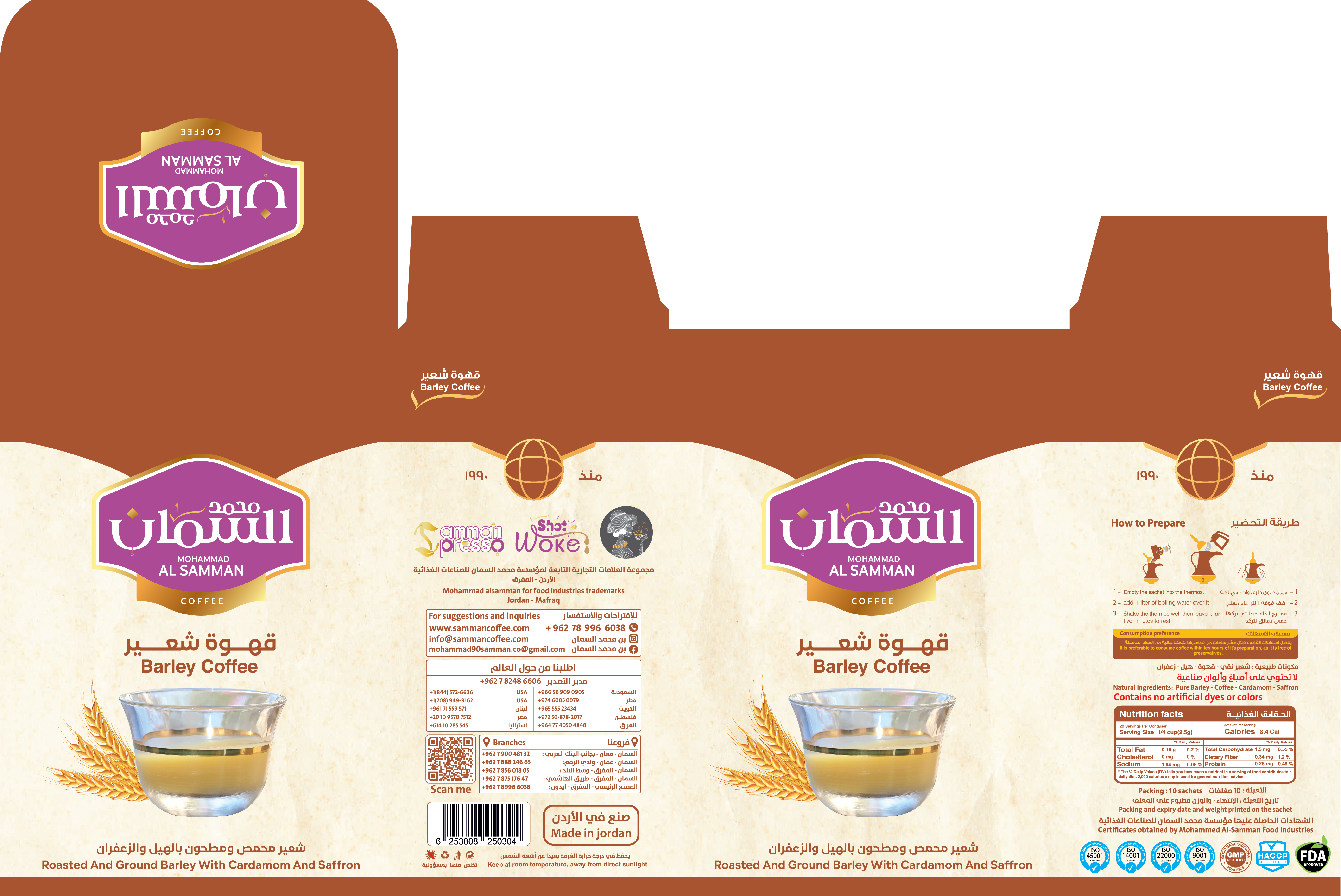 Al Samman’s Barley Coffee offers a nourishing, caffeine-free alternative, blending roasted barley with cardamom and saffron for a unique and healthful drink. Perfect for those seeking a traditional, yet innovative beverage.