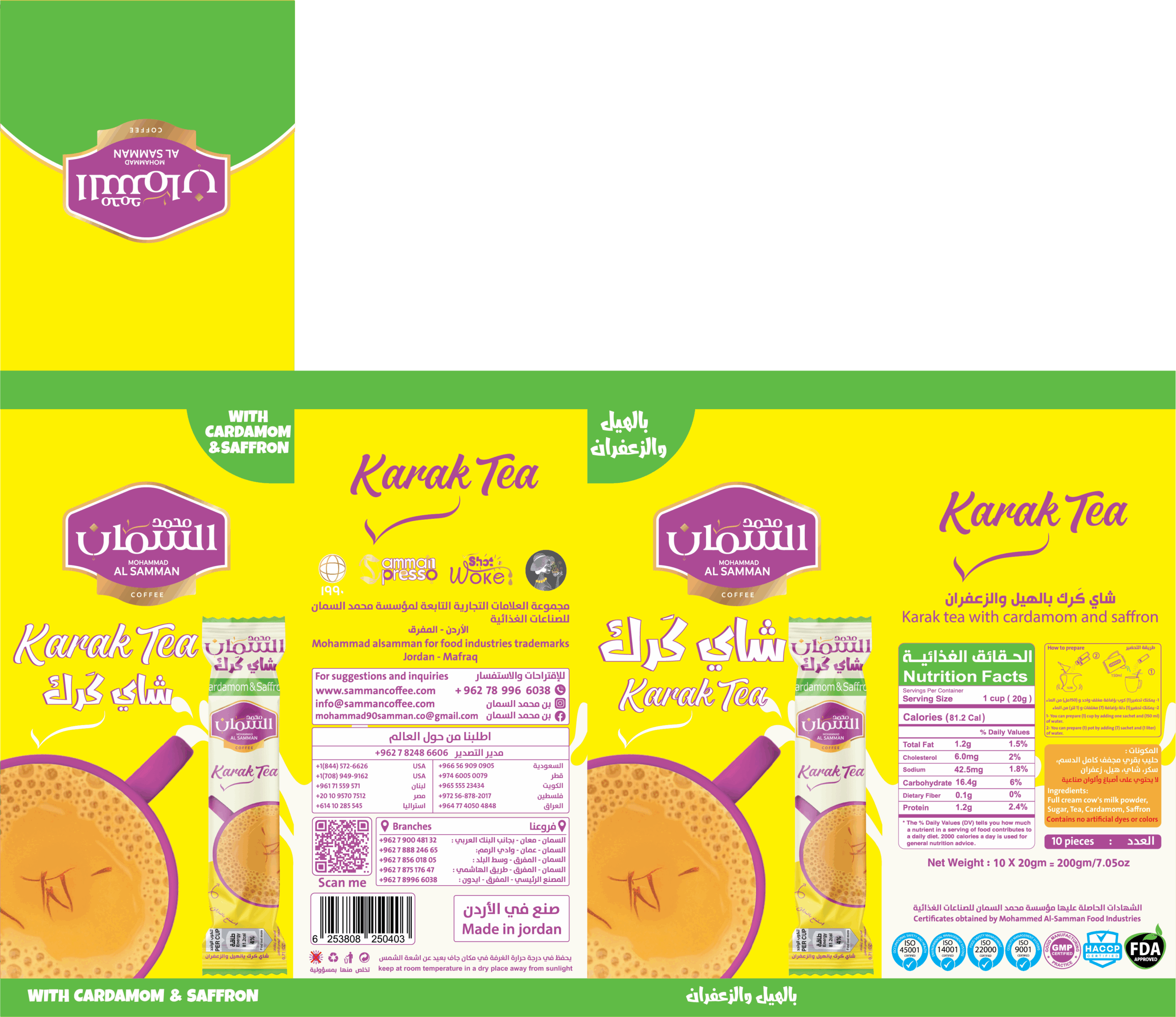 Al Samman Karak Tea with Cardamom & Saffron – Contains 10 x 20g pouches